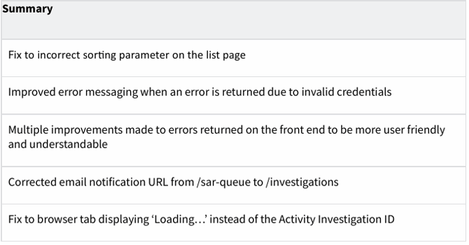 Other Activity Investigation Improvements / Fixes